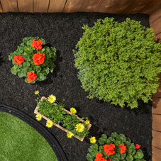 Beyond crumb rubber used as fill on artificial turf, recycled rubber can also be used as a poured-in-place or bonded mulch surface in commercial and retail landscape settings. These durable products are nonslip, which mitigates fall risks, and incredible at shock-absorption, which reduces the chance of serious injury. Outdoor basketball and tennis courts, tracks, walking trails and playgrounds frequently use recycled rubber for its safety and durability. Its pigment is also fade-resistant, and you can customize the surface color to showcase school spirit or blend in with the natural surroundings.